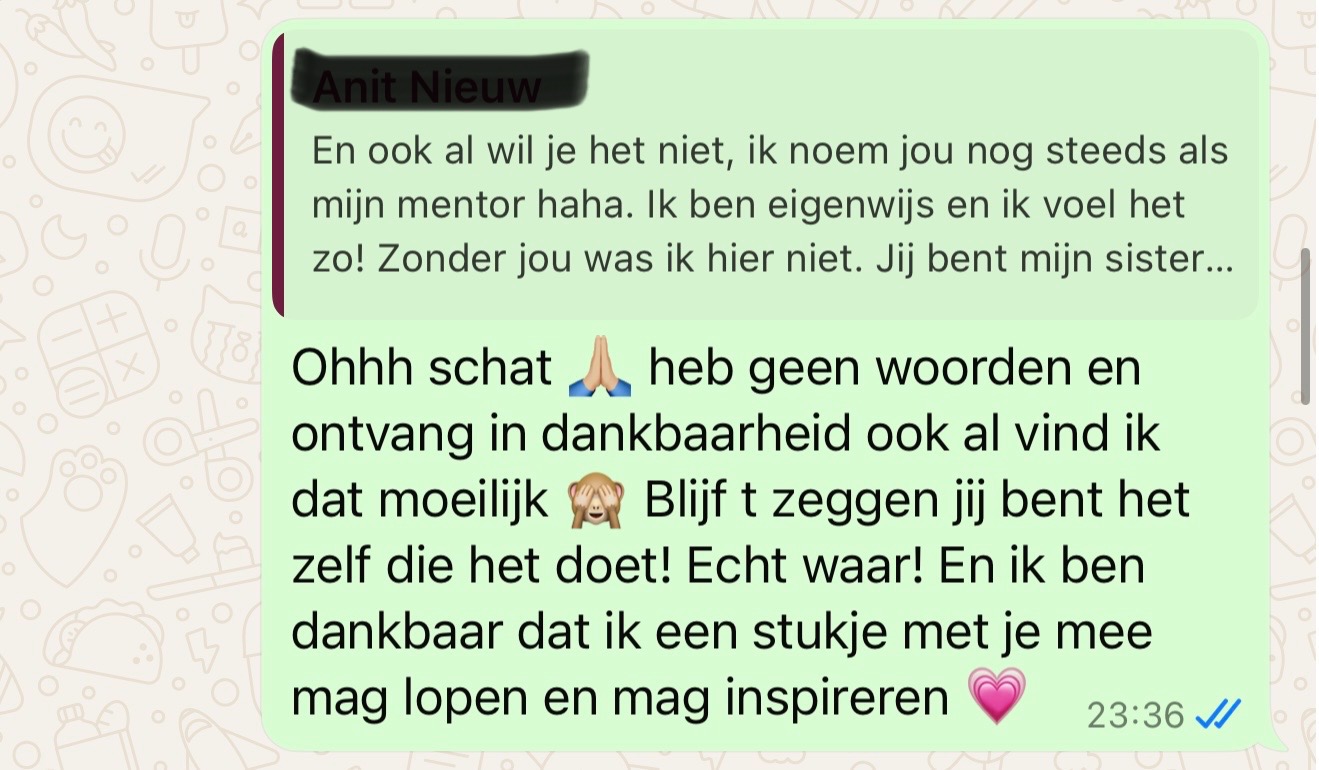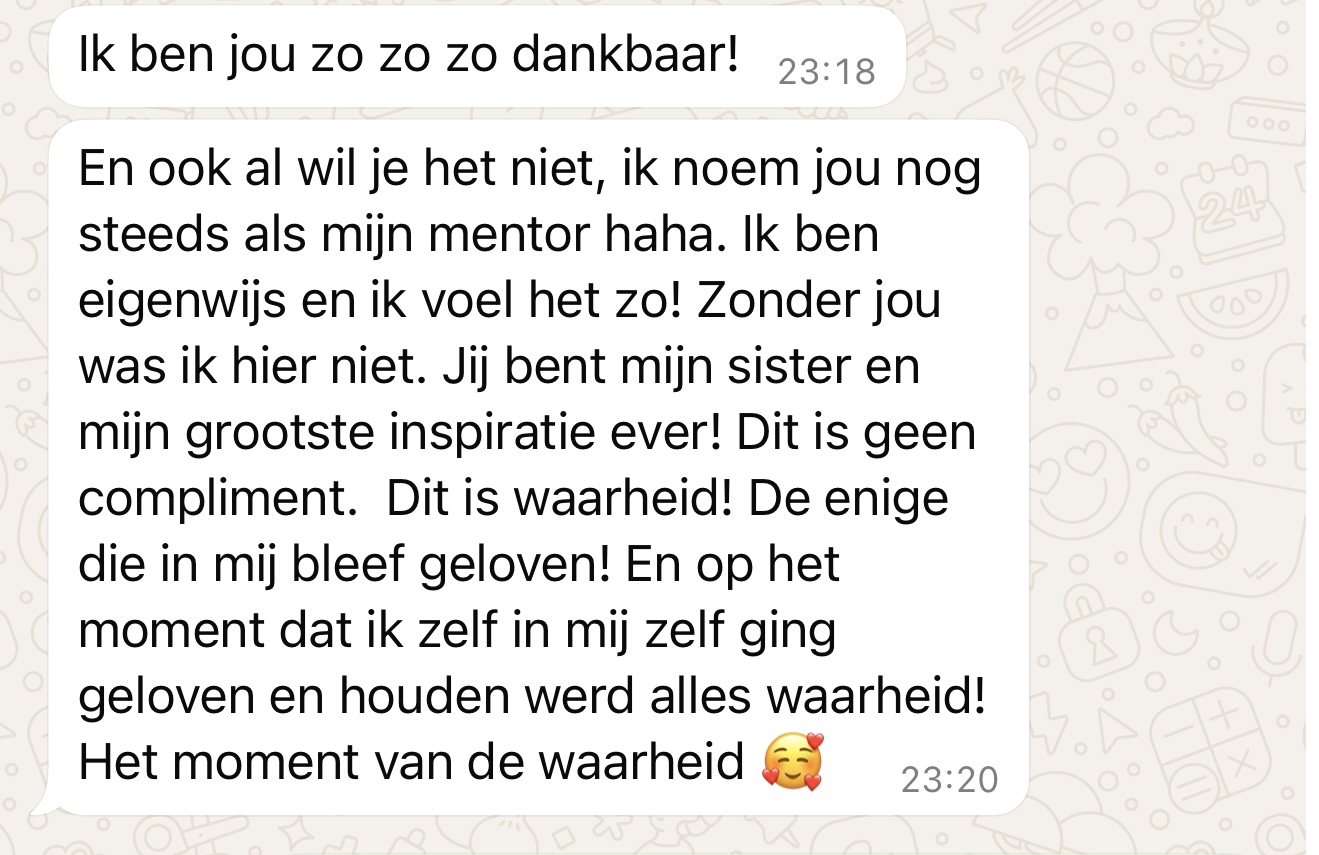 Je ontvangt 1-op-1 momenten waarin we samen zakken in jouw trilling.
